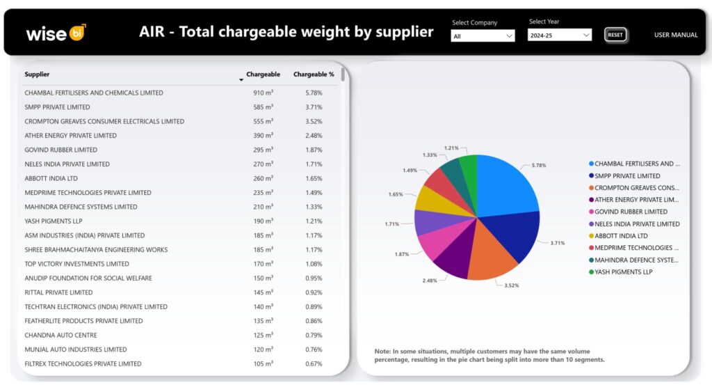 📊 Why is the Air – Total Chargeable Weight by Supplier Dashboard Important in CargoWise?